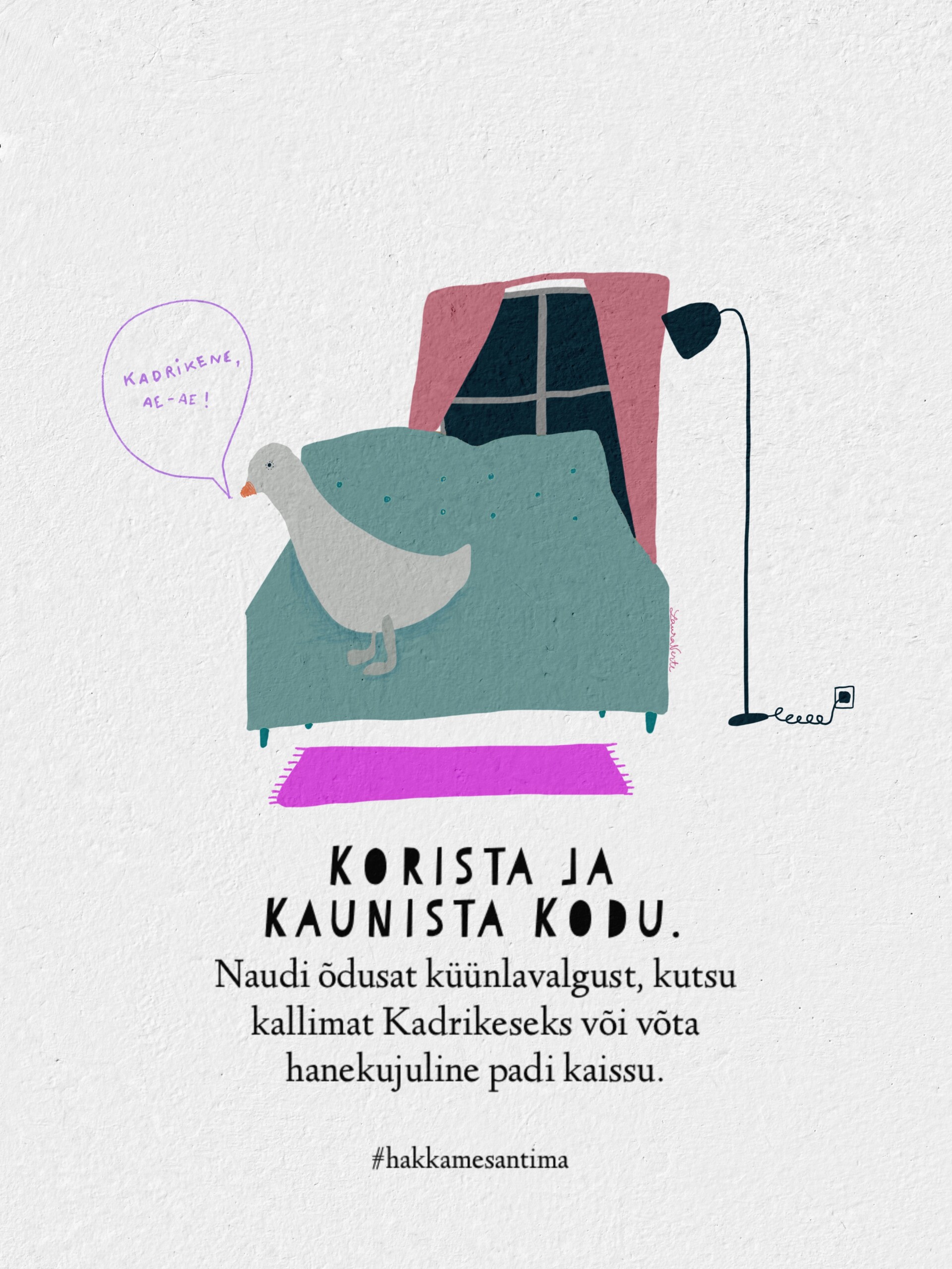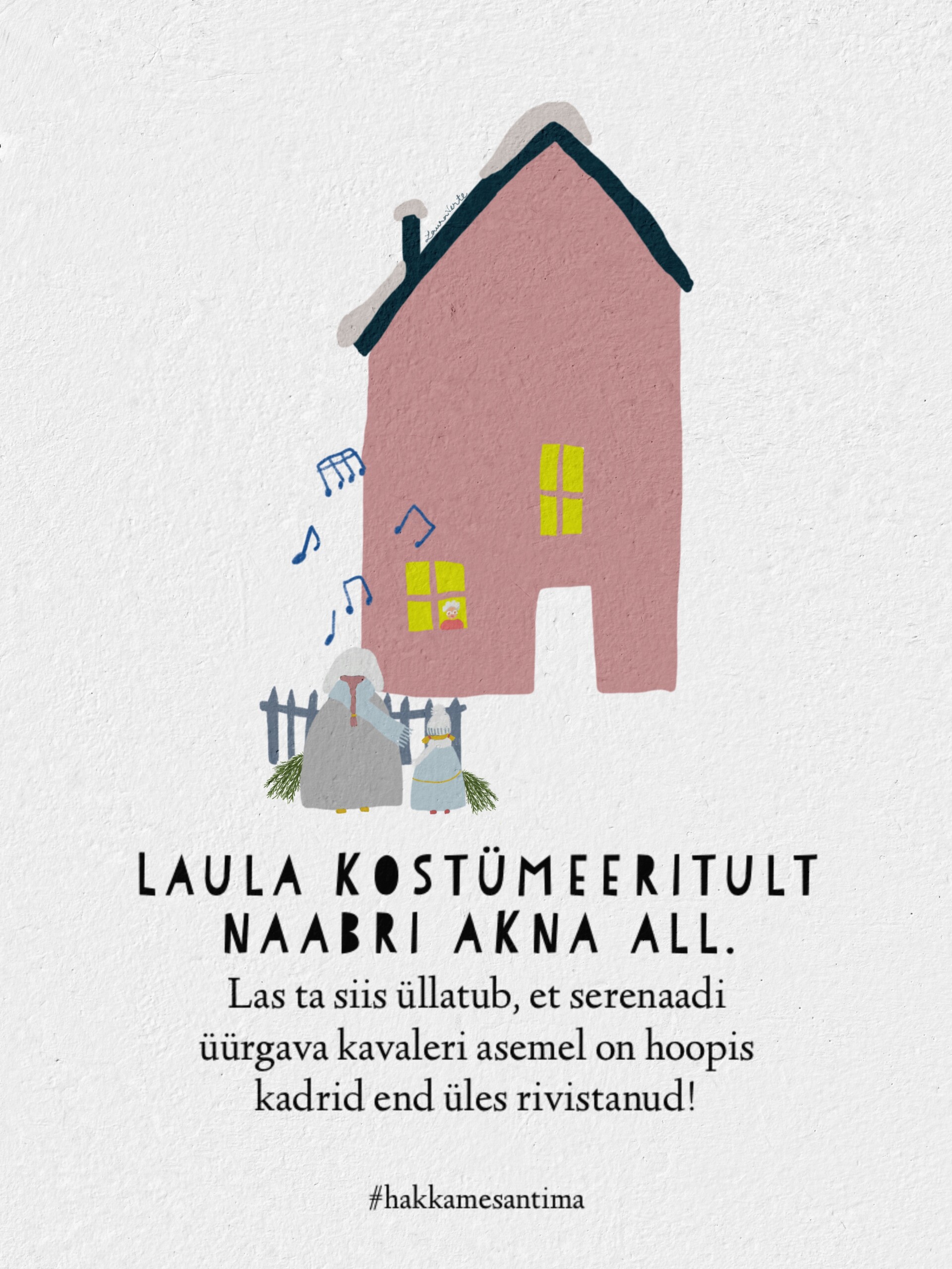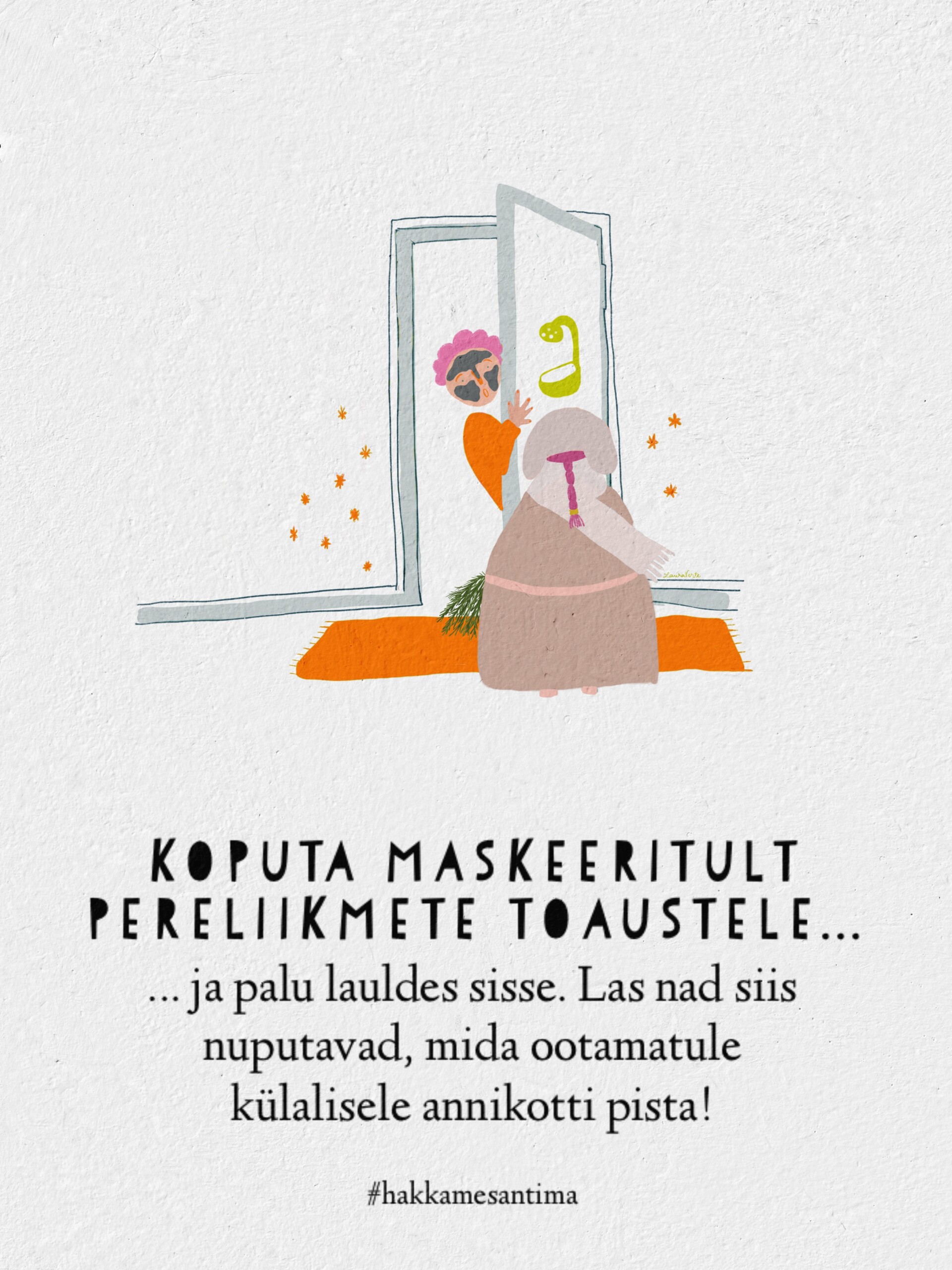 Mida teha, kui hing kibeleb katri jooksma või oodatud kadrisante ukse taha kahjuks ei ilmu? “Hakkame santima!” meeskonnal on iga haiguse vastu rohtu. Laura Verte inspireerivate piltide abil teeme puust ja punaseks, kuidas tähistada kadripäeva nii, et me kõik jääksime terveks!