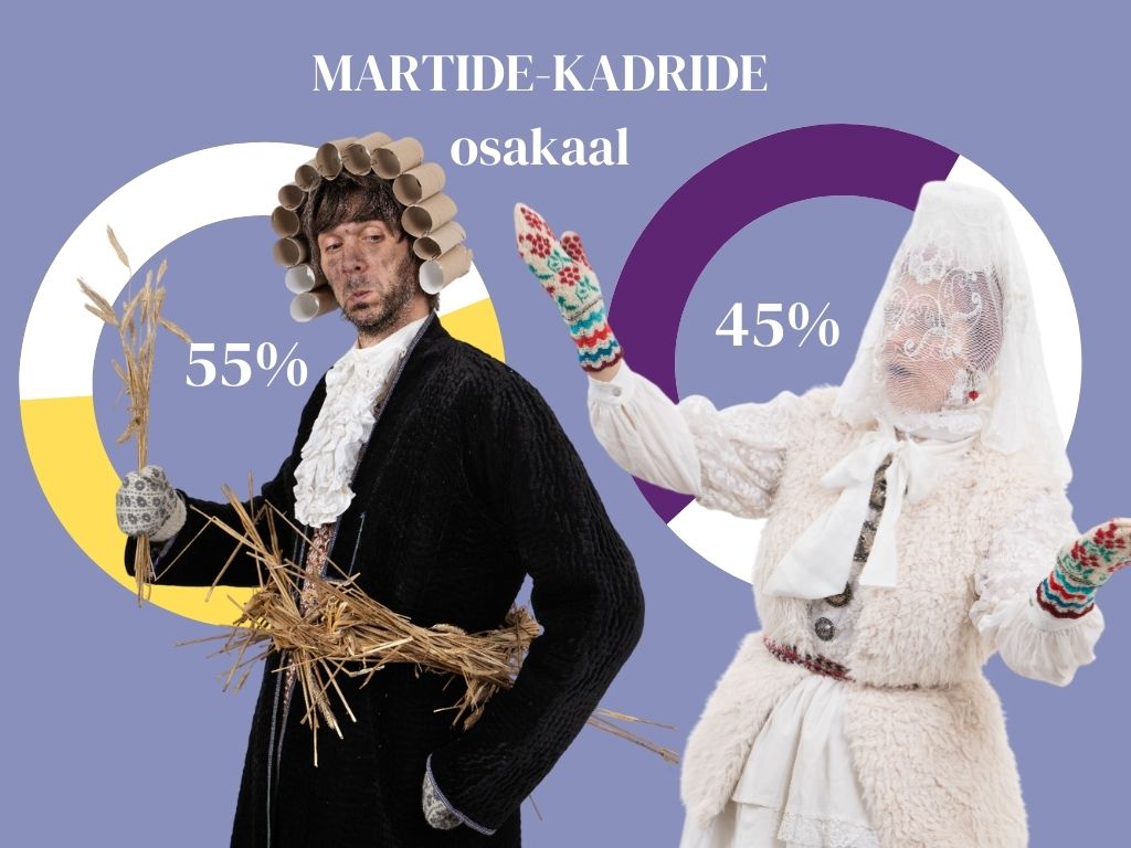 - Kui viimased kaks aastat on näidanud, et mardisante on meie maal hulgaliselt rohkem ringi käimas kui kadrisid, siis tänavu on need numbrid vägagi ühtlustunud – kõikidest registreerunud santijatest moodustasid mardid 51% ja kadrid 49%.