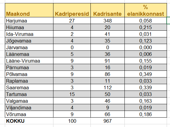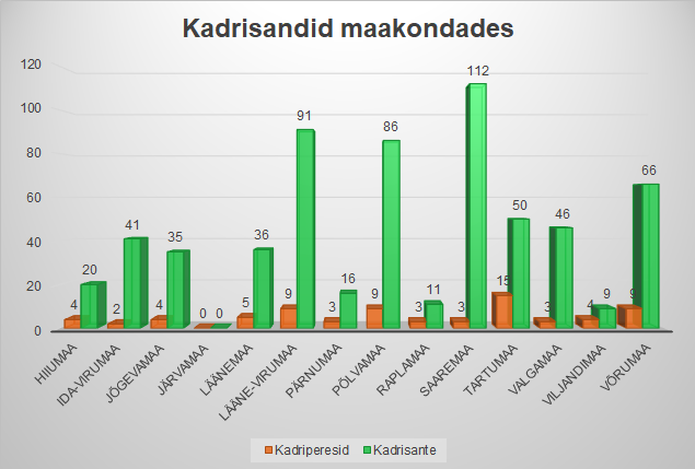 - Enim kadrisante pani end kirja Tartumaalt (18%), sellele järgnesid Pärnumaa (16,5%), Harjumaa (12,2%) ja Valgamaa (11,4%).
